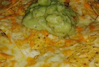 2.- En un plato apto para horno, ponemos una primera capa de nachos, y cubrimos con queso (la cantidad será a nuestro gusto).