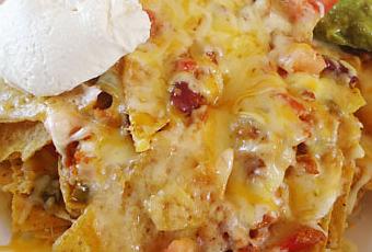 3. Ponemos los nachos en un recipiente apto para el horno, espolvoreamos con un poco de queso, añadimos el tomate y la carne con frijoles, espolvoreamos con el resto del queso.