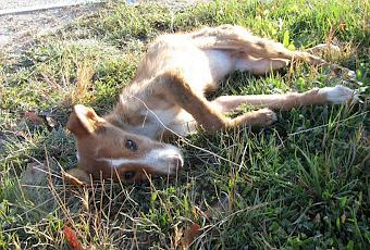 Una mañana de sábado como cualquiera, de camino a recoger un cachorro que se va adoptado, veo a un animalito inmóvil entre 2 carriles de la carretera entre la Feria de Muestras y el polígono Fuente del Jarro. En el arcén, hay un joven con el movil en la mano. Me paro y me cuenta que ha llamado al 112 y que están de camino. Si? que bien. Pero hay que sacarlo de allí sino los coches le van a pasar por encima. Digo yo... así que me pongo el chaleco, la recojo rapidamente y la dejo en el terraplén más cercano (la verdad es que a las 8h30 de un sábado no hay mucha gente por la carretera, menos mal). El chico tiene prisa porque se va a trabajar y no la puede acercar al veterinario que le indico. Pues nada, gracias por haberte parado y la cargo en el coche. Como mi veterinaria no está disponible, me voy corriendo a una clínica de urgencias de La Cañada.