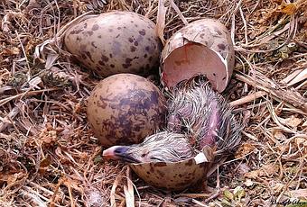 Han pasado 29 días desde que una hembra de Gaviota patiamarilla puso un huevo en una colonia del occidente de Asturies. Desde entonces, los dos miembros de la pareja se han turnado para incubarlo, junto a los otros dos que completaron la puesta. Y ayer por fin llegó el momento. Durante los últimos días, el pequeño pollito había crecido tanto que apenas se podía mover. No recibió ninguna ayuda de sus padres para nacer, él solo, desde el interior del huevo, fue girando sobre si mismo mientras picaba la cáscara hasta que el huevo se partió en dos y pudo salir al exterior. Mojado y con los ojos cerrados, respiró su primera bocanada de aire fresco se quedó tendido en el suelo, agotado tras el esfuerzo. Sus hermanos también habían empezado a romper el huevo y pronto le acompañarían.