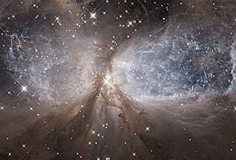 Una joven estrella masiva (nació hace tan solo 100.000 años), llamada IRS 4, es responsable de la actividad furiosa que vemos en la nebulosa S106. Podemos observar lóbulos gemelos de gas muy caliente que se extienden hacia el exterior desde la estrella central. Los estudios detallados de la nebulosa también han descubierto varios cientos de enanas marrones. Estas “estrellas fallidas” pesan menos de una décima parte de nuestro Sol. Debido a su baja masa, no pueden producir energía suficiente a través de la fusión nuclear como lo hace nuestra estrella.