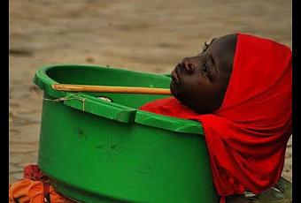 Su hermano de 14 años la carga y traslada en un balde color verde todos los días 25 kilómetros, para llegar a el centro de Kano, donde Rahma pide limosnas mientras los transeúntes se sorprenden y asustan al ver a alguien en semejantes condiciones.
