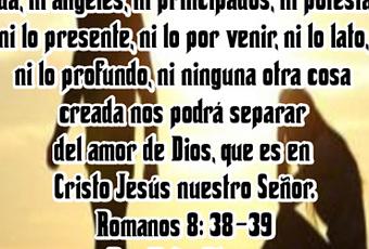 “Por lo cual estoy seguro de que ni la muerte, ni la vida, ni ángeles, ni principados, ni potestades, ni lo presente, ni lo por venir, ni lo lato, ni lo profundo, ni ninguna otra cosa creada nos podrá separar del amor de Dios, que es en Cristo Jesús nuestro Señor” (Romanos 8: 38-39 – RVR1960).