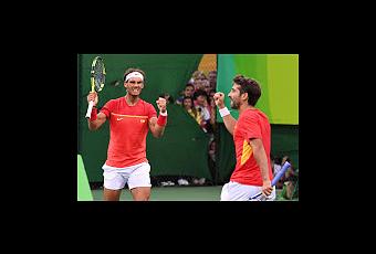 La pareja española de tenis Nadal y Marc ganó a la canadiense y se jugarán el oro con la rumana hoy en torno a las 22.30 horas. Nadal, además, sigue adelante en individuales, ya en cuartos de final, como Bautista. Al triplete no optará tras decidir retirarse en el mixto. Por otro lado, Garbiñe y Carla Suárez cayeron en el cuadro de dobles femenino cuando se acercaban a la disputa por las medallas.