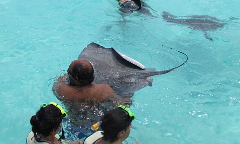 En el folleto de excusiones leí sobre una acuática con unos tal stingray, con mi inglés tarzanezco no conocía esa palabra y pensé que serían algo así como unos delfines juguetones, o como nadar con pescaditos de colores tipo Nemo, mientras tomábamos una piña colada escuchando Fields of Gold y mariposas de colores volaban alrededor.