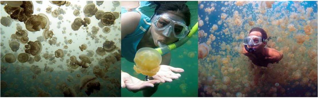 Las medusas llegaron al lago hace millones de años, a través de un paso natural de agua, pero en la actualidad ese paso se ha cerrado y las medusas se reproducen por millones sin miedo a ser devoradas por ningún depredador, lo que permite este remanso de bullente vida. Os dejo alguna fotografías y vídeo para que disfrutéis de este maravilloso espectáculo: