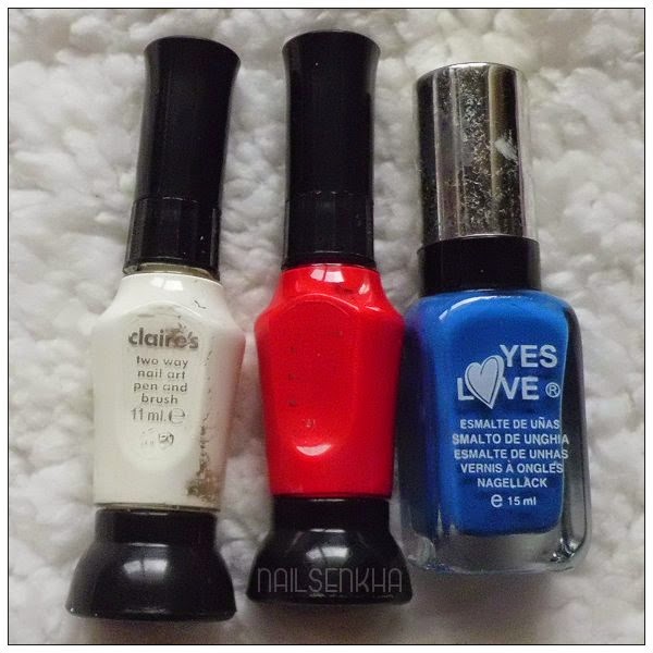 Productos utlizados:Esmaltes Claire's de color rojo y blanco que son tipo boli y pincel finito.Yes Love 39