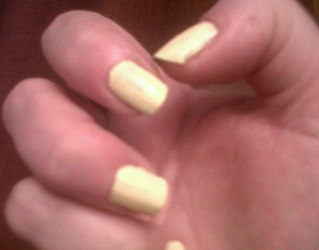 1º Pinté con 2 pasadas todas las uñas con el color de la izquierda "lemon sugar"