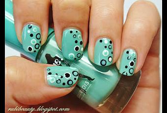 Como esmalte base he usado este de Bourjoirs, pero si lo veis bien os daréis cuenta de que es un clon del For Audrey de China Glaze. Además de este tono he usado negro (kiko) y blanco (Essence) además de un top coat para proteger el diseño (Seche) y los punteros para hacer los puntos. Si no tenéis, AQUI os explico cómo haceros varios de distintos tamaños.