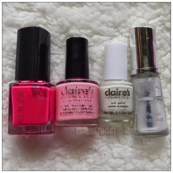 Deliplús 64Esmalte blanco y rosa de Claire'sL'oreal manicura frenchs / Pastel top coatDotting tool