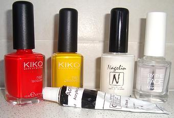 Para hacer el fondo de la uña así con efecto fuego he usado el esmalte de Kiko rojo 236 y el amarillo279 y he usado la táctica de la esponja para hacer un degradado, que me gusta mucho el efecto que dan los degradados.