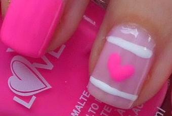 *Aplicamos nuestra capa base y esperamos que seque.*Pintamos todas las uñas con el rosa más oscuro y una con el rosa más claro, damos una o dos capas depende si el esmalte cubre.*Cuando el esmalte base este seco con el el tip painter hacemos dos rayas dejando hueco entre ellas para con el dotting tool hacer un corazó en el medio.*El esmalte de Yes Love tiene un acabado mate pero como a mi no me gusta como queda ese color en mate aplico en todas las uñas top coat. El top coat que yo aplico casi siempre lo aplico de los normales no de los de efecto gel, ya que los que he probado me cuartean el esmalte y la manicura no me dura nada entonces así que por el momento si me voy a quedar con la manicura para llevar puesta prefiero una top coat normal.