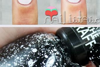 La manicura es muy sencilla, solo tenemos que pintar la base con un blanco y dibujar un arco negro en la uña con un pincel fino. Luego cubriremos el resto de la uña con el negro y dejamos secar. Para terminar damos una capa de Play The Graffiti. El resultado es un cruce de colores, mientras que en la parte blanca resaltan los glitter negros, en la negra resaltan los blancos y queda un efecto muy curioso. También podéis llevar a cabo esta manicura al revés, poniendo de base el negro. El resultado será igual.