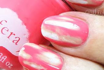 Se deben de poner tres capas de tres colores distintos. Yo he elegido un rosa (Diana de Sfera), un beige (Susan de Sfera) y como base el blanco. Me parece que la combinación queda muy bonita y el efecto como de desteñido o Tie Dye. En el tutorial Ro lo hace con esponja, yo lo he hecho con el pincel. Queda igualmente bien si ponemos capas finas, para eso hay que usar un esmalte que cubra muy bien, yo por supuesto para el blanco he usado el Milk de Rare Nails. Uno de mis blancos favoritos EVER. Para terminar usaremos un bastoncillo de algodón mojado en quitaesmalte y con él frotaremos suavemente el esmalte para lograr este efecto tan singular. Tened cuidado de no frotar demasiado y llegar hasta la uña porque quedará feo. Si os pasa esto (lo confieso, a mi me ha pasado esta vez) bastará con poner una gotita del color base para taparlo, (usando la dotting tool por ejemplo). Finalmente yo le he puesto una capa de esmalte transparente, en este caso el Gel Look de Essence.