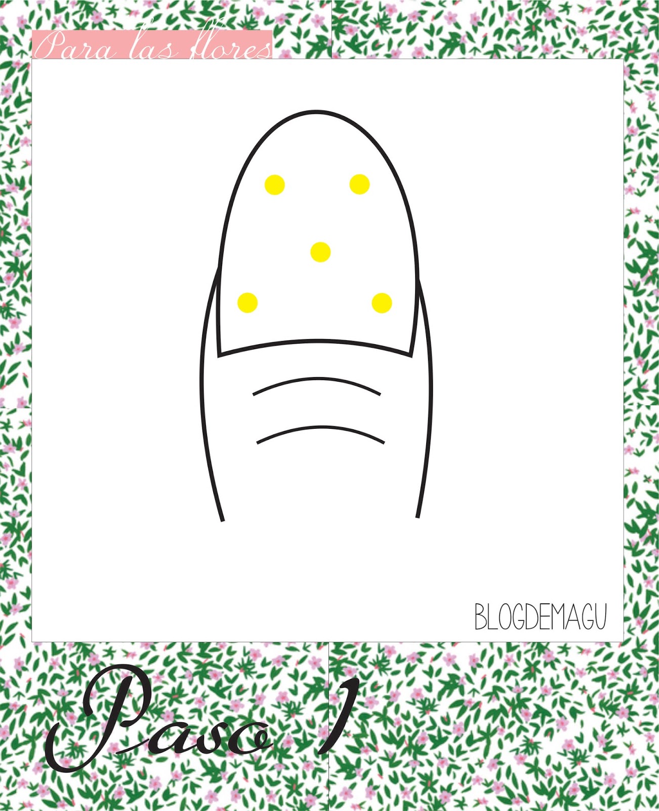 Con un dottin tool o un alfiler o una invisible, me hice puntos amarillos, en distintas zonas de mis uñas.