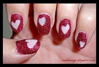 Lo primero es recortar los corazones que vayamos a poner. Tras aplicar una capa de nuestro color base, en mi caso el 210 de kiko la dejamos secar muy muy bien y pegamos los corazones como más nos guste. Ahora, uña por uña, damos una capa de esmalte rojizo, retiramos la pegatina de corazón con unas pinzas de depilar y luego metemos el dedo en el bote de las fibras para que se queden pegadas al esmalte. Presionamos un poco las fibras con el dedo y retiramos el exceso. Repetimos en todas las uñas y listo.