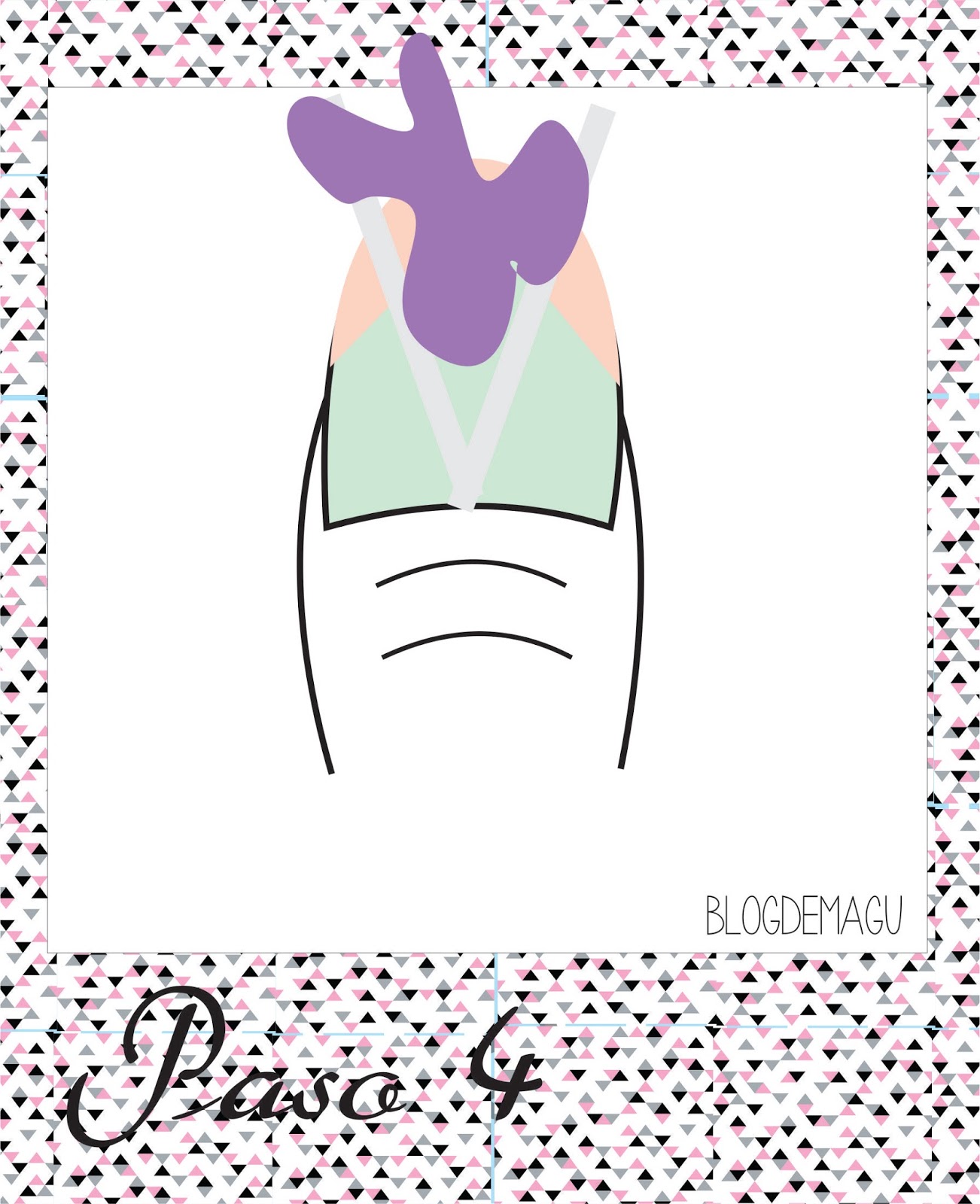Una vez que se seco, a mano alzada, me hice la forma en V. Con el rosa clarito de Tejar. No use las tiras en V, como dice el dibujo, por que todavía me cuesta que queden centradas, otra opción poco acertada. Pero me hice la "experta" y dentro de todo, tan mal no me salio.