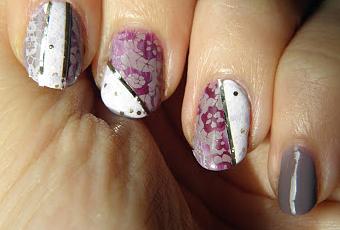 Y para poner la guinda en el pastel, dos pequeños detalles más: el primero de ellos las tiras de nail tapes para marcar la separación de los colores. El segundo de ellos es el glitter "brillo violeta", otro de los esmaltes de la colección Fusión. ¿Os confieso algo? Siempre que iba a dar un paso mas en la manicura, tenía miedo por si acababa estropeando el resultado, pero después me alegraba de haberlo realizado, y es que creo que es una manicura muy elegante y especial.