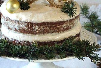 Para montar la tarta, extendemos una capa delgada de frosting sobre la base donde vamos a colocar la tarta y colocamos la primera capa de bizcocho. Cubrimos con una generosa capa de crema de queso extendiéndola con ayuda de una espátula. Colocamos el segundo bizcocho y cubrimos de manera imperfecta la parte superior del bizcocho, dejando los laterales sin cubrir para dar al bizcocho ese “look desnudo”. Adornamos a nuestro gusto. Yo en este caso he utilizado unas bolas de Navidad, unas ramas de abeto, un ciervo y un topper “Merry Christmas”. Una decoración ideal para las fiestas que se avecinan.