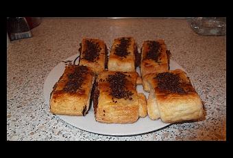 Comentario Personal: Esta receta está elaborada y grabada por mis amigos Fran y Jessy.Ingredientes:Crema de cacao (nocilla)Azúcar glasFideos de chocolate para decorar1 Masa de hojaldreLocalización de los Ingredientes: Cualquiera de los ingredientes los podemos encontrar en cualquier supermercado.