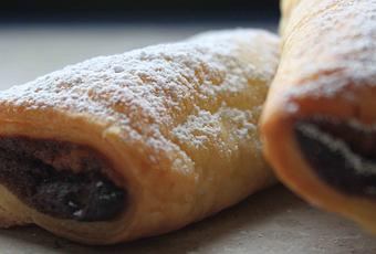- rellena 2/3 de la lámina de hojaldre con la crema de chocolate