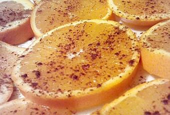Básicamente, se trata de cortar en rodajas la naranja, espolvorear con canela y servir.