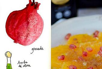 1 naranja de buena calidad por persona, 1 granada madura, azúcar, canela, y Aceite de Oliva Virgen Extra.