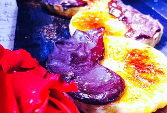 - Cuando ya esté, Sácalas y espolvorea con el azúcar el resto de cada una de las rodajas y dóralas con el soplete de cocina.