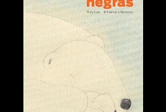 Como digo, es una narración muy tierna en la que se resalta el amor entre la mamá osa y su hijo. El fondo de las ilustraciones, en el interior, también parece la tela de un lienzo, y todo ese fondo siempre es de color blanco porque todo está nevado. Sobre la nieve aparecen los ositos, dibujados de forma muy minimalista para que sólo destaquen sus negras narices. El cazador está pintado con colores oscuros para que resalte entre todo este paisaje polar. Prácticamente las páginas completas están ocupadas por los dibujos; los textos tienen una tipografía muy agradable y son muy cortitos, lo justo para explicar lo que sucede aunque se entendería perfectamente sólo con las ilustraciones. Por eso, Naricillas negras es muy adecuado para niños muy pequeños.