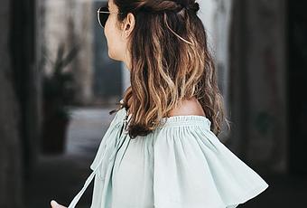 These pics are some of my favorite of all we took in Polignano a Mare, Italy. The off the shoulders green dress seems made for walk around the narrow streets with balconies full of flowers of this charming seaside village. I combined it with brown flats, grey bag and my favorite necklace from María Pascual. The make-up is of course from the latest Guerlain’s Terracotta collection, bronze powder, golden lipstick and nail polish that match whit the color of the dress. Hope you like it! Big kiss and have a lovely day! xx