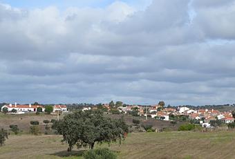 Continuamos por un camino a la izquierda que nos conduce al camping pasando, entre olivos hasta el Monte do Benfica, descendemos entre olivares hasta una zona de pastizales. Llegamos a las inmediaciones de Aldeia de Rosário que rodemos por un camino asfaltado para llegar a la carretera y de nuevo a la iglesia.