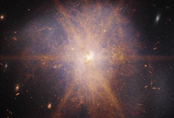 La cantidad de gas en esta pequeña área es equivalente a todo el gas presente en la Vía Láctea. Las estrellas se producen a un ritmo vertiginoso a partir del polvo y el gas en bruto suministrados por la colisión. Un titán galáctico que ahora, gracias a Webb, podemos contemplar en todo su esplendor.