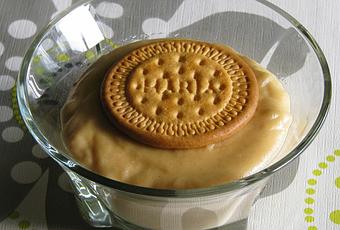 - Vierte la mezcla sobre los recipientes donde vayas a servir, coloca encima una galleta para decorar y deja templar.