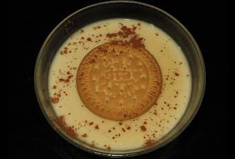 Echamos en los cuencos donde vayamos a servir las natillas, las metemos al frigorífico y antes de servir decoramos con la galleta y la canela en polvo.