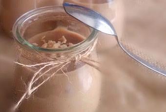 Guardamos en la nevera unas horas y servimos acompañadas con unas avellanas tostadas machacadas.