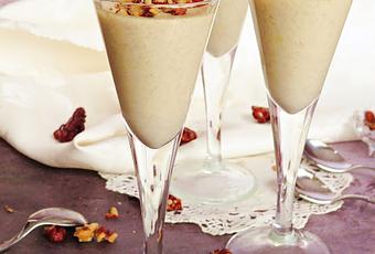 Verter en los recipientes de servir, dejar enfriar y antes de llevar a la mesa decorar con nueces caramelizadas.