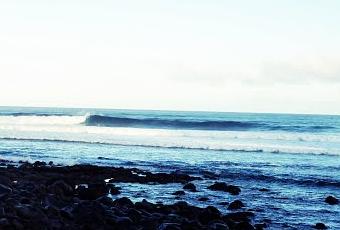 Ya en frente de ese nuevo pico, buscamos la entrada, miramos profundidad, rocas y corrientes. Antes de entrar decido colocar una plástico verde en la pared del acantilado para tener referencia mientras estemos en el agua y saber en todo momento dónde esta el pico y de dónde no debíamos pasar por las rocas que asomaban en esa zona. Me pegué una izquierda buenísima que la pude seguir hasta el siguiente pico que rompía más abajo enlazando diferentes secciones. Un camino que tardas lo suyo andando por las rocas y en que poco tiempo lo recorres en una ola. Al volver al pico después de una buena remada un local que había entrado me dijo que me acababa de coger la mejor ola del día seguro. Hablando con él nos comentó que para los próximos días tenia pinta que en el Sur de la isla podían caer buenos baños porque las previsiones acompañaban (nos hizo que pensar)