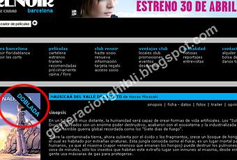 Hoy me había dado por consultar la web de los cines en los que se va a proyectar Nausicaä del Valle del Viento a partir de este viernes 7 de Mayo. Cuando pasaba por el sitio de los Cines Renoir me he encontrado con esto: