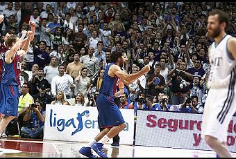 Hasta llegar hasta esa jugada dudosa –“no hemos visto falta (…) Joe Ingles coloca su tren superior muy vertical y consigue molestar el tiro de Carroll que en su caida baja ostensiblemente los brazos y es él quien contacta con el cuerpo del alero azulgrana”, escribe Piti Hurtado en su blog– pasó de todo en un partido que se desarrolló como una montaña rusa para los dos equipos. Carroll falló esa última posesión después de hacerse con un rebote ofensivo tras un fallo de un Sergio Rodríguez desconocido y sin su duende habitual. Oleson ya había puesto el marcador final con dos tiros libres y, ayudado por un triple salvador de Wallace, había rescatado a un Barça en la cuerda floja por un triplazo de Mirotic, punteado por el propio australiano (71-67 a 52'7s). Pero Mirotic se fue eliminado tras cometer dos infracciones. Obtuso en ataquePoco falló Oleson, un jugador frío en la pista. Por frío se entiende que cumple con frescura su cometido, que no es otro que ayudar, defender y seleccionar bien sus tiros. No se suele entretener en protestar y es un profesional intachable. El tirador de Alaska ha sabido convertirse en alguien fundamental sin tener tanto protagonismo como el que, por ejemplo, llegó a acumular en el Fuenlabrada. Oleson fue el primero en rescatar a su equipo, obtuso en su ataque en varias fases del partido como en la inicial, cuando Suárez disputó algunos de los pocos minutos que acumula en la final y entre su canasta y dos triples de Mirotic y Llull impulsaron al Madrid 8-0. Hasta 3m 51s tardaron en anotar los azulgrana, con una acción con la derecha de Ingles, protagonista de la acción polémica final y al que Pascual reemplazó por Oleson, que con cinco puntos seguidos puso a su equipo por primera vez por delante (10-11 a los 9m 45s), continuando lo iniciado por Navarro. La Bomba estaba sufriendo lo indecible por la defensa de Rudy, que cuajó un gran partido global (10 rebotes, siete faltas recibidas...) y un partido discreto en anotación (11). Los locales también echaron en falta los puntos de Carroll, discontinuo y sin chispa o de Mirotic, lanzado al principio y al final del encuentro, pero que no acaba de pillarle el truco a la final para desconsuelo del Madrid, con el que ha sido nombrado MVP de la fase regular. Tampoco funcionó Llull, mucho tiempo en el banquillo por cargarse con dos personales en un suspiro, ambas a Navarro. El base menorquín fue reemplazado por Sergio Rodríguez, por primera vez en mucho tiempo, un jugador sin tino (1/7, cuatro asistencias y dos pérdidas). El fogonazo de DardenFue Darden el siguiente en darle la vuelta al partido con un fogonazo de los suyos. Le acompañaron Slaughter, hasta las personales aconsejaron a Laso reservarle, Begic se multiplicaba y el Madrid se escapó de nuevo (25-17 a los 15m 54s) tras un palmeo de Rudy. Hizo acto de presencia Lorbek -no jugó en la segunda parte por un golpe en la cabeza, se mareó y tenía problemas de visión- y volvió a aparecer Navarro, antes de que Reyes diese varios golpe sobre la mesa de los suyos y al descanso se llegase con 36-26 y un Navarro muy enfadado por haber perdido la pelota en la última posesión. Lo que pretendía ser una asistencia a Tomic, otra vez discontinuo, resultó una castaña. Rudy pondría más difíciles las cosas para el Barça (39-26 a los 21m 25s), un equipo tan capaz de meter de carrerilla once puntos en minuto y medio y bordar una defensa zonal 2-3, como de encajar justo después un parcial de 16-4, con el que Reyes igualaba la máxima ventaja del Madrid (55-41 a los 28m 47s). Un obstáculo mayúsculo que superó el Barça de la mano de Oleson y de Navarro, de Mavrokefalidis, Wallace y Jasikevicius, ante el discreto partido de Huertas y Sada. Este equipo tiene muchas vidas y mucho corazón. MADRID 71 (10+26+19+16): Llull (8), Rudy (11), Suárez (2), Mirotic (10) y Begic (7) –quinteto inicial–; Draper (3), Reyes (13), Rodríguez (2), Carroll (4), Darden (7) y Slaughter (4). BARÇA 72 (11+15+20+26): Huertas (3), Navarro (19), Ingles (4), Wallace (6) y Tomic (8) -quinteto inicial-; Sada (2), Jasikevicius (0), Todorovic (2), Mavrokefalidis (8), Rabaseda (0), Oleson (14) y Lorbek (6). Eliminados: Reyes, Mirotic y Tomic.