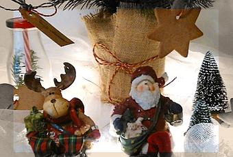 Y ahora llega el momento de colocar a los protagonistas, mis figuritas vintage, estas si que son autenticamente vintage, nada de compradas ahora sino que provienen de mis recuerdos y mi niñez; un Papa Noel y un simpático reno cuyos cuernos están pegados varias veces, el pobre ha tenido que sobrevivir a los abrazos de mis hijos.