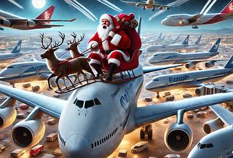 Papá Noel sorteando el tráfico aéreo.