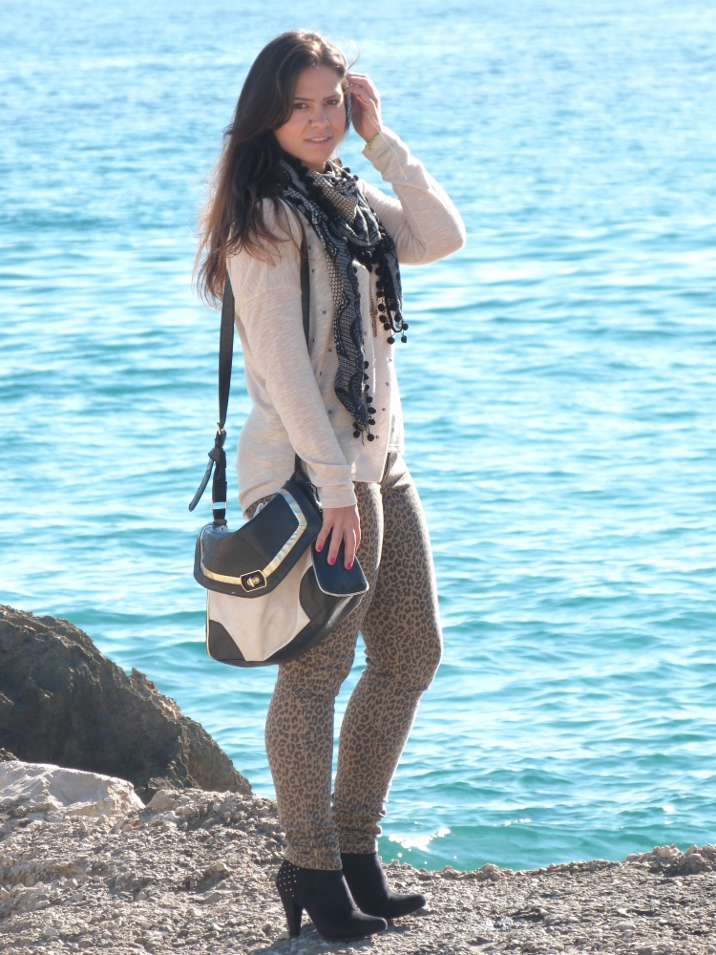 No puede hacer muchas fotos porque no llevaba la tarjeta pero os traigo unas fotitos de un paseo por la playa. Llevo los pantalones de leopardo que ya os enseñé en este post, aunque es verdad que como esta camiseta es más corta y los llevo con mis súper botas comodísimas de ASOS, no me gusta tanto el efecto que hacen.