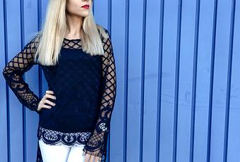 Hoy os traigo un nuevo post donde el protagonista es el color navy, con una camiseta asimétrica de encaje y unos botones en la espalda. Es de 21 BOTONES, una tienda local que ya os presenté en post anteriores y que veréis mucho por aquí!!