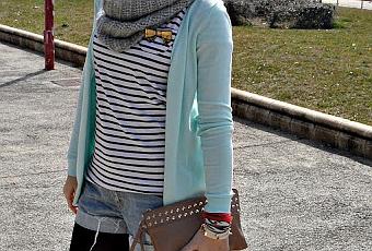 Por fin es viernes!! Hoy un look del fin de semana pasado, donde veíamos el sol, nada que ver con el tiempo de hoy!!De nuevo por aquí mi chaqueta mint, me declaro fiel seguidora de este tono!! Camiseta navy, tendencia que tanto me gusta, y esta primavera-verano vuelve a ser un must, así que genial!!Esta vez lo combiné con short y zapatos planos! Como veis, un look primaveral total!!