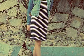 Denim Jacket: Gap, Striped Dress: Tommy Hilfiger, Flats: Zara