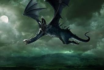 (...) Y se vio entonces que era una criatura alada: un ave quizá, pero más grande que cualquier ave conocida; y parecía desnuda, pues no tenía plumas. Las alas enormes eran como membranas coriáceas entre dedos callosos; hedían. Una criatura acaso de un mundo ya extinguido, cuya especie, escondida en montañas olvidadas y frías bajo la luna, había sobrevivido incubando en algún nido horripilante esta progenie última y maligna. Y el Señor Oscuro la había adoptado, alimentándola con carnes putrefactas, hasta que fue mucho más grande que todas las otras criaturas aladas; y como cabalgadura la había entregado a su servidor. Descendió, descendió, y luego, replegando las palmas digitadas, lanzó un graznido ronco, y se posó de pronto sobre Crinblanca, y le hincó las garras encorvando el largo cuello implume.
