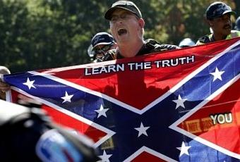 El sitio de internet de la campaña de Tyler, simpatizante de Trump que se postula para el Congreso en Tennessee, exhibe la bandera confederada (considerada un símbolo de odio racial) flameando en lo alto de la Casa Blanca. Uno de sus carteles de campaña dice: “Haz Estados Unidos blanco otra vez”.