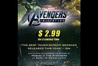 Disney Online ha publicado una nota de prensa para informar de que, para celebrar el lanzamiento en DVD y Blu-ray de Los Vengadores en Estados Unidos, baja de precio por tiempo limitado del primer episodio del juego para iOS (y próximamente para Android) Avengers Initiative, que pasa de costar 5,49 € a costar 2,39 €.