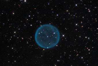 La nebulosa tiene un diámetro de cerca de cinco años luz, y el espesor de la capa esférica es alrededor de un tercio de un año luz. La nebulosa está a una distancia de aproximadamente 7.000 años luz de la Tierra en la constelación de Hércules. Abell 39 es una de las esferas más grandes de nuestra galaxia. Estudios de la nebulosa indican que Abell 39 contiene sólo la mitad de oxígeno que el existente en el Sol. La estrella central, de magnitud 15,7 está evolucionando hacia una enana blanca caliente. Su temperatura efectiva es de 150.000 K y tiene una masa aproximada de 0,6 masas solares. Actualmente se desconoce porqué se encuentra desplazada 0,1 años luz respecto al centro de la nebulosa.Fotografía OriginalCrédito: WIYN / NOAO / NSF