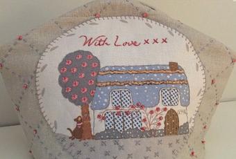 Le he aplicado un motivo de una de las telas de la última colección de Verónica Requena aunque la he "tuneado" un poco resaltando el dibujo con un sencillo bordado (en las dos siguientes fotos se puede apreciar la diferencia)